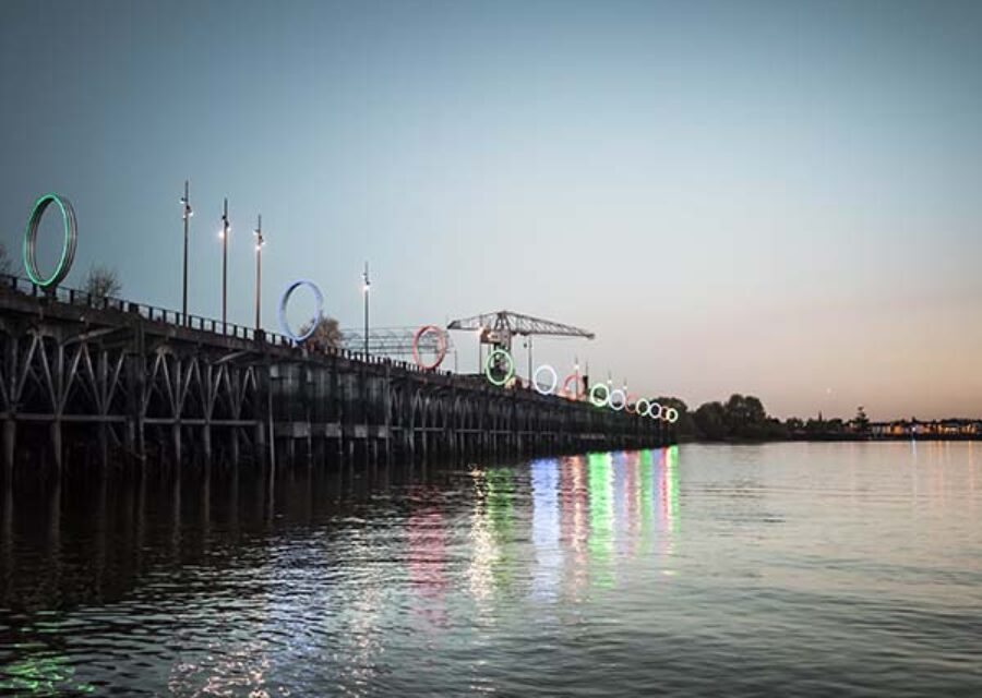 Daniel Buren et Patrick Bouchain, Les Anneaux, 2007, Quai des Antilles, © Franck Tomps / Le Voyage à Nantes, ADAGP, Paris 2025