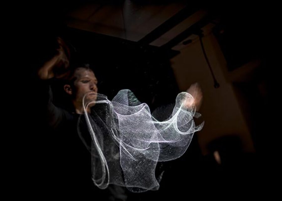 Alexis Rouvre propose ici une improbable manipulation du temps, une mise en scène s’appuyant sur la symbolique des objets, les sensations données par leur cinétique, leur sonorité et leur mise en lumière. Avec des chaînettes, des aiguilles et de la laine, des pierres volcaniques, du sable, des aimants et des balanciers, il développe un vocabulaire minimaliste au service d’une écriture poétique, rythmée et fascinante.