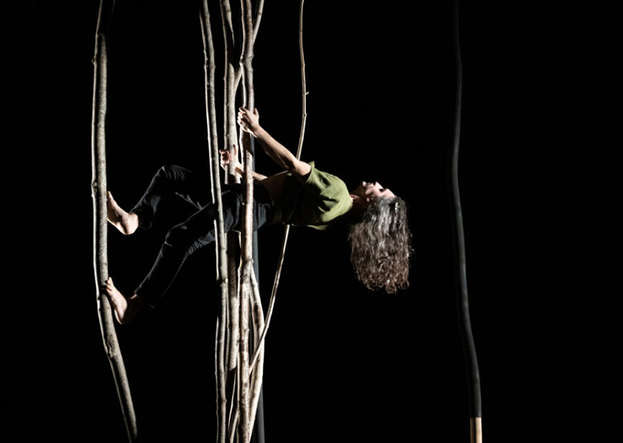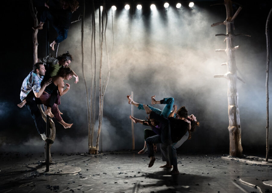 Avec ce spectacle Fanny Soriano sonde les comportements de nos semblables face au grand mystère qu’est l’amour. Dans une forêt clairsemée de mâts chinois et de troncs d’arbres, 8 artistes explorent de multiples rituels de séduction inspirés de la nature ou des codes sociétaux de notre monde moderne.
