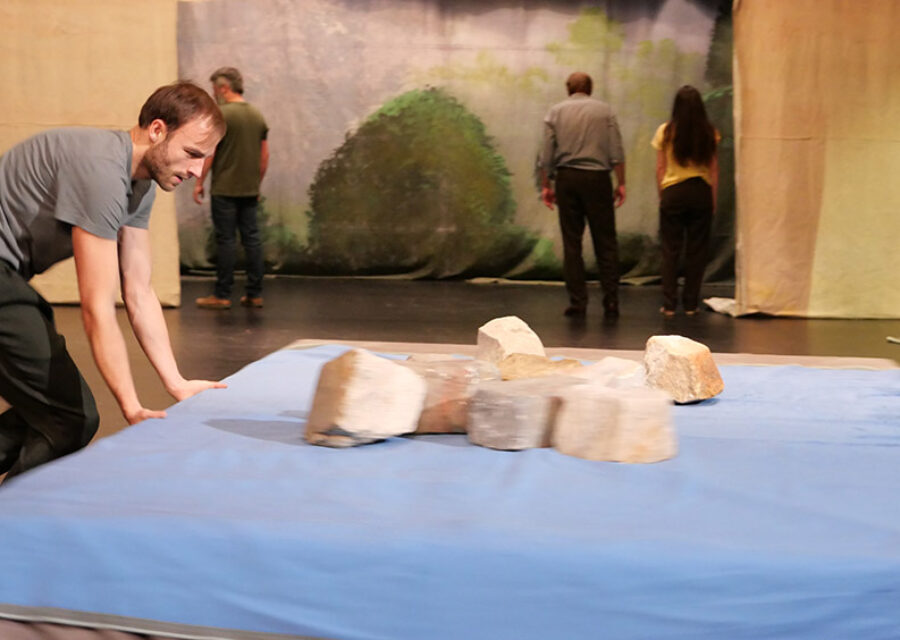 Par un travail physique et ludique autour de la matière, du costume, de l’objet et de l’espace, nous