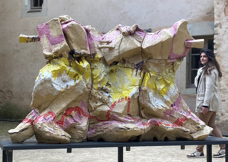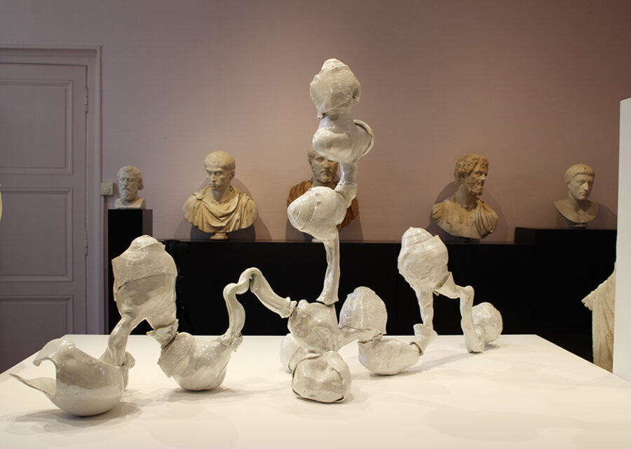 Cherchant à se confronter à quelque chose qu’elle ne domine pas, Clémence van Lunen est une céramiste qui travaille dans de très grands formats. Les pièces modelées à partir de terre de grès informes et travaillées plutôt avec rudesse, conservent la trace de ce corps à corps.