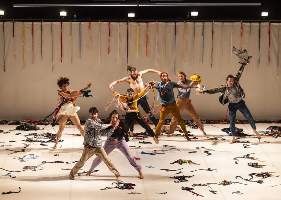 conception et chorégraphie Bruno Pradet / interprétation Jeanne Cathala, Chinatsu Kosakatani, Joël-Elisée Konan, Jules Leduc, Marie Maleine, Thomas Regnier, Elie Tremblay, Loriane Wagner / scénographie Clément Dubois / création sonore Yoann Sanson / avec Marion Dhombres (soprane), Black Adopo (Beat-boxer), Patrice Rix (vielle à roue) / création lumière François Blondel / costumes Rozenn Lamand / régie plateau Fabrice Coudert / regard complice Loriane Wagner / intervenant Beat box Black Adopo / administration – production Céline Aubry / production – diffusion Azzedine Boudène