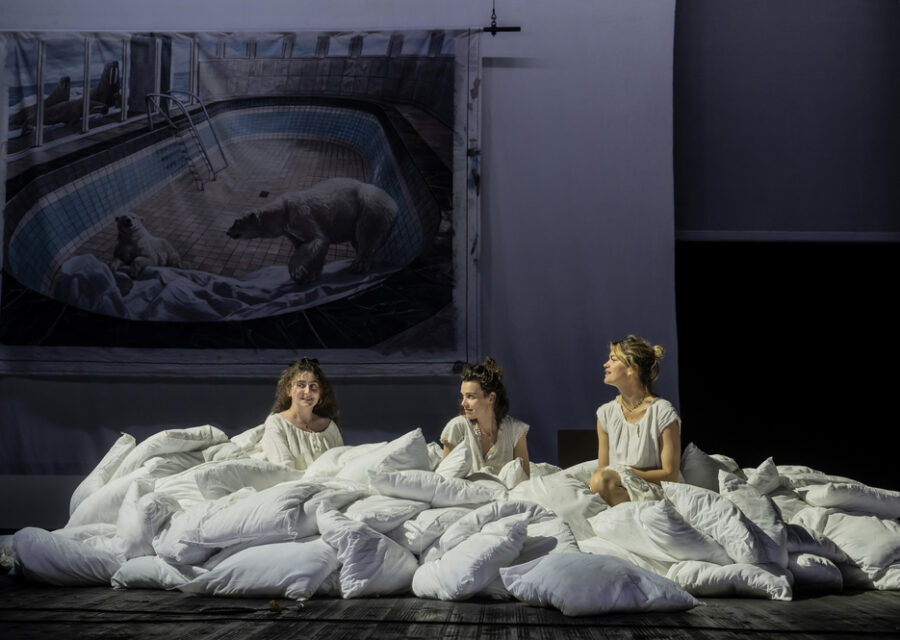 texte Rebekka Kricheldorf – variation des Trois Soeurs de Tchekhov / mise en scène Marcial Di Fonzo Bo / traduction Leyla-Claire Rabih, Frank Weigand – André Markowicz, avec Clara Bretheau, Marie-Sophie Ferdane, Jean-Christophe Folly, Elsa Guedj, Camille Rutherford, Alexandre Steiger / scénographie Catherine Rankl / dramaturgie Guillermo Pisani / musique Etienne Bonhomme / conseiller à la distribution Richard Rousseau