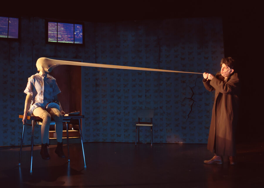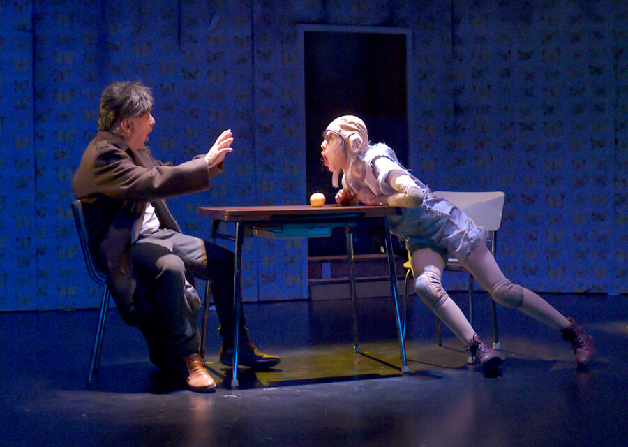 Dans leur petit appartement en sous-sol, la marionnette créée par Gepetto vit comme dans un cocon. Les ennuis commencent lorsque le pauvre Gepetto vend son manteau pour acheter une tablette à son fils et lui permettre ainsi d’être comme les autres. La course au bonheur numérique est lancée mais si les écrans constituent un piège séduisant, ils ne sont pas le monde. Et celui-ci toque à la porte, mettant la naïveté et l’esprit critique de Pinocchio à l’épreuve. Papier peint décrépi, fausses émissions télé, hologramme et lunettes 3D concoctent un univers surréaliste, magique et vintage dans lequel les acteurs et actrices s’amusent. Nicolas Sansier réussit à transformer le conte cruel en une intelligente fantasmagorie actuelle teintée d’humour et de merveilleux.