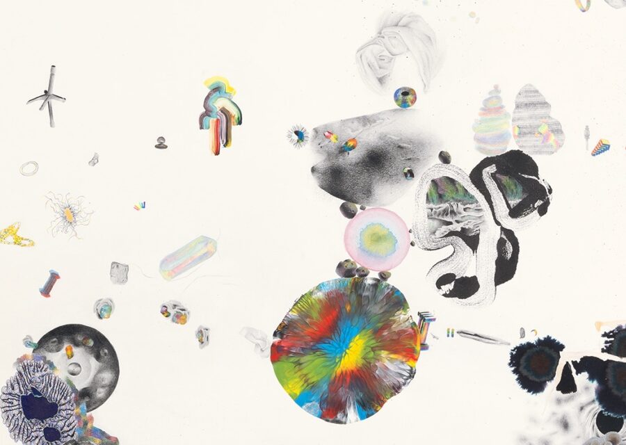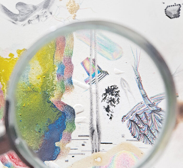 Cette exposition réunit deux artistes dont les pratiques ont quelque chose de spatial et d’éclaté, principalement dans le dessin chez Anthea Lubat et dans les sculptures sonores chez François Dufeil. Au 4bis, la salle d’exposition devient par métaphore un fruit. Le travail d’Anthea sur les murs vient comme une peau alors que les sculptures de François, au centre de l’espace, nous font penser à un noyau rythmé par le son qu’elles dégagent.