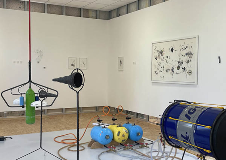 Cette exposition aurait pu s’appeler Tatinmarre cosmique ! en hommage à Robert Tatin qui aimait tant les mots arrangés avec poésie. Comme lui qui se proclamait « œuvrier », la formation première de François Dufeil est celle de Compagnonnage. Ses « sculptures-outils » sont le fruit d’une relation forte entre art et artisanat où la poésie vient au secours de la technologie.