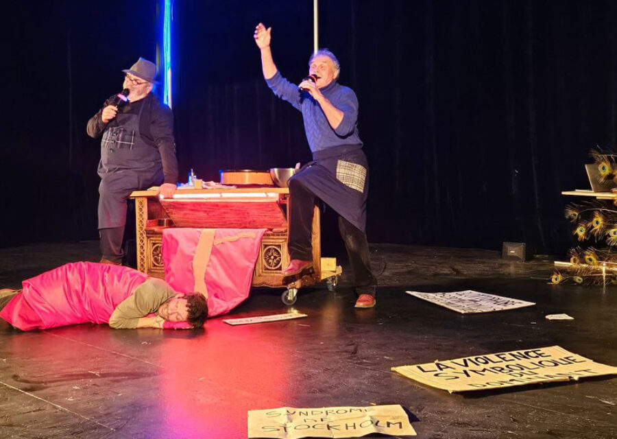 mise en scène et jeu Jean-Philippe Davodeau / collaboration artistique Juan Pablo Miño / jeu et chant kan ha diskan Jean-Pierre Quéré / jeu Bob Simon / scénographie Romain Rambaud / création costumes Eva Langlois