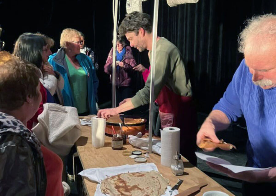 Entouré d’un comédien crêpier et d’un chanteur de kan ha diskan (technique de chant traditionnel breton), il nous convie à une soirée conviviale et ludique qui vise à réhabiliter les gens qui ont pu souffrir, de façon directe ou indirecte, de leur langue ou de son absence.