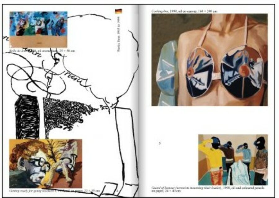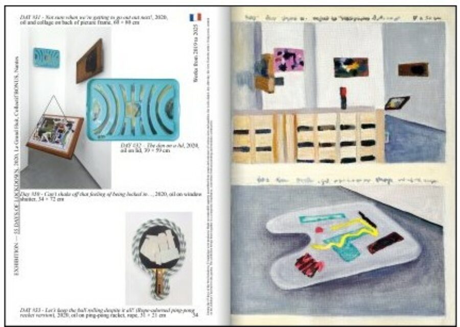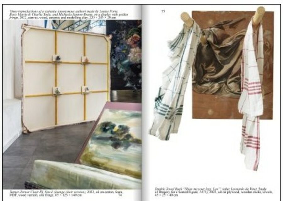 Cette première monographie retrace trente années de pratique en Allemagne, à Londres et en France. Elle réunit reproductions, vues d’expositions et essais, et présente également seize peintures spécialement conçues pour l’occasion, imprimées sur un papier offset. Telles des poupées russes, elles créent une mise en abyme de la fabrication du livre, brouillant la frontière entre documentation et œuvre.