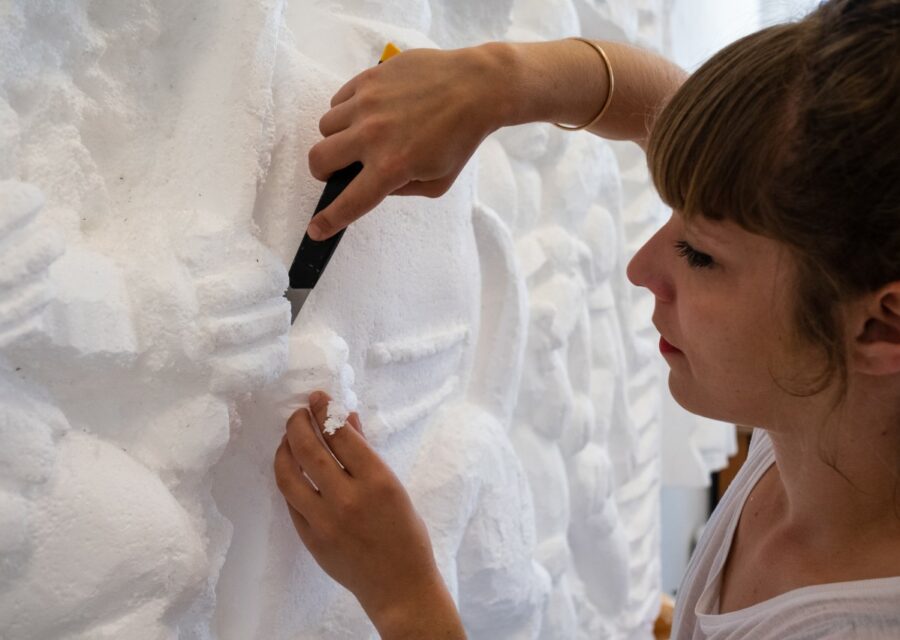 Cet atelier propose aux participant·es d’approcher le volume par la réappropriation de la technique classique et ancienne du bas-relief en sculptant des formes dans du polystyrène.