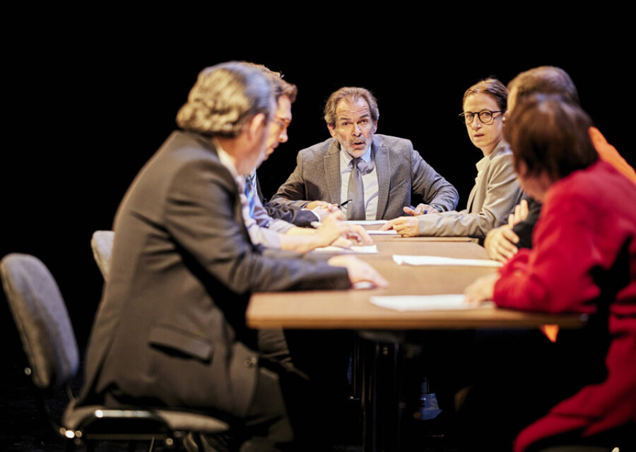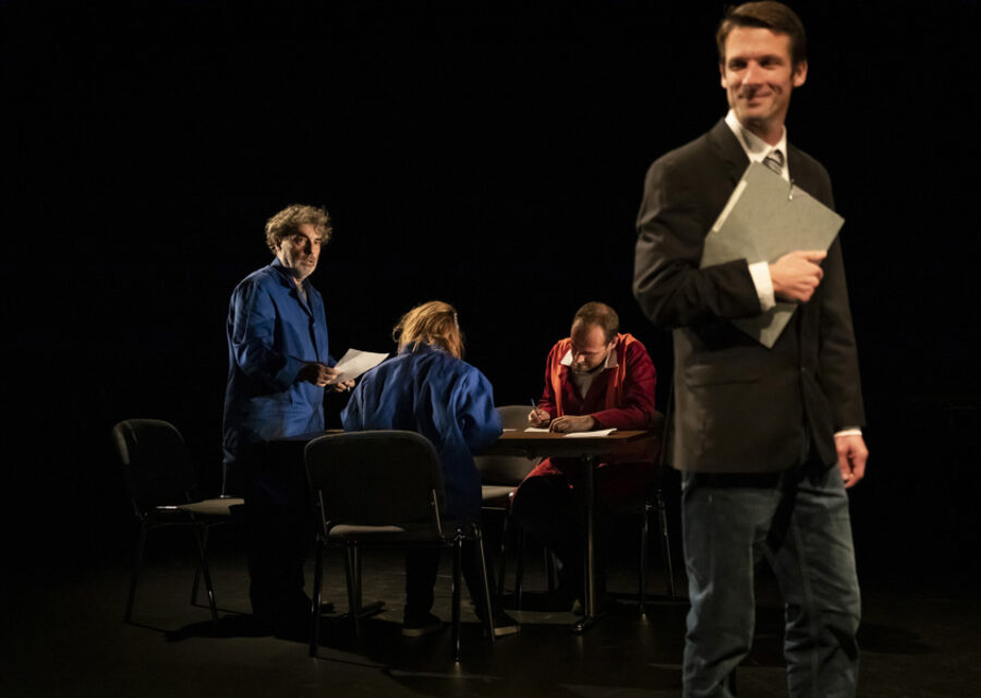 d’après le film de Laurent Cantet / texte Laurent Cantet, Gilles Marchand et Elise Noiraud / adaptation et mise en scène Elise Noiraud / avec Benjamin Brenière, François Brunet, Sandrine Deschamps, Julie Deyre, Sylvain Porcher, Vincent Remoissenet, Guy Vouillot / création lumière Philippe Sazerat / création sonore Baptiste Ribrault / scénographie Fanny Laplane / régie générale Lison Foulou / costumes Mélisande de Serres / administration et développement Annabelle Couto – Le Bureau des filles / diffusion Jean Luc Weinich – Rustine