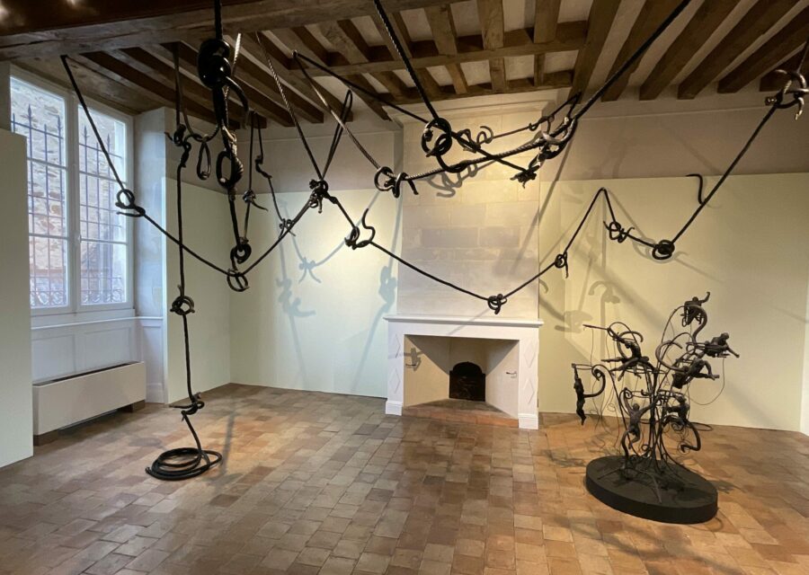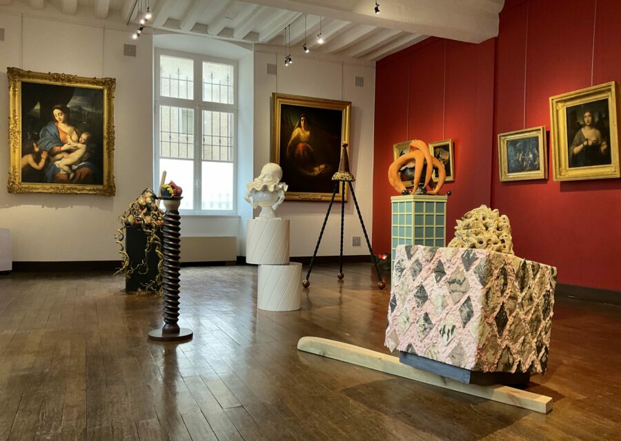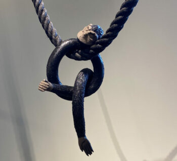 Dans ce contexte d’exposition au Musée d’art et d’histoire de Château-Gontier, l’artiste poursuit une production d’œuvres qui théâtralise jusqu’à l’absurde la domesticité et la servitude du vivant, avec comme volonté corolaire d’invalider les hiérarchies sociaux-culturelles. Du saltimbanque à l’animal en cage, en passant par l’esthétisation ornementale, l’artiste s’évertue à souligner avec humour les habitudes toutes humaines d’établir des ménageries décoratives à l’échelle ménagère.