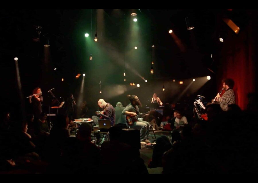 flûte Hélène Lamballais / percussions Jean Duval / clarinettes Etienne Lamaison / guitare Matthieu Gomez Mancini / basse et machines Benoit Vicarini / guitare, machines et composition Jérémy Chmielarz