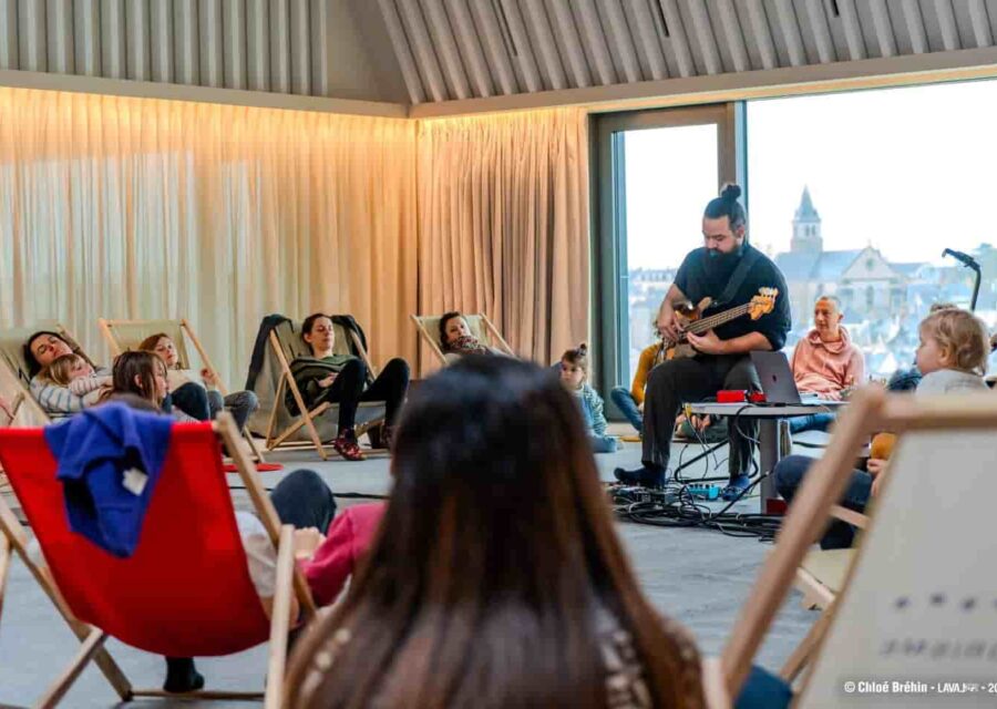 La Compagnie KuB propose une immersion dans un univers sonore singulier. Lovés confortablement au milieu d’une installation spécifiquement conçue pour l’espace d’accueil, les participant·es sont comme au milieu du son. Entouré·es par les enceintes et parmi les musicien·nes, ils et elles n’ont plus qu’à fermer les yeux et se laisser bercer. Une heure suspendue !