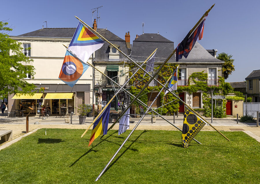 Cette installation monumentale est constituée d’un ensemble de mâts, de bannières colorées et de chaînes. Des drapeaux sur lesquels figurent des compositions géométriques abstraites de l’art du XXe siècle sont accrochés à l’extrémité de chaque mât.